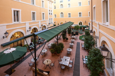 Caffè Doria è il luogo ideale per passare le calde giornate estive: un prezioso e accogliente salotto nel cuore di Roma e un incantevole giardino segreto all’interno del Chiostro del Bramante. Questo è il posto dove arte, cibo e passioni si fondono nella raffinata e suggestiva cornice di Palazzo Doria Pamphilj, garantendo un’esperienza indimenticabile e rinfrescante in ogni momento della giornata. La cucina, diretta dallo Chef Massimiliano Mazzotta, è sempre fedele al concetto di “Comfort Food” e offre un perfetto equilibrio tra tradizione e innovazione. Qui potrete gustare deliziose proposte dalla colazione al pranzo, fino all’aperitivo.