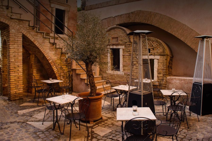 Disperata perché non trovavo un posto per festeggiare il mio compleanno che rispecchiasse quello che avevo in mente, interpello la mia amica Flaviana. Ci pensa un po’ su e mi propone Saulo. Mi innamoro immediatamente del cortile – ricavato dal restauro di un antico sepolcreto romano – su cui affaccia il locale. Un luogo pittoresco e assolutamente inusuale, rispetto ai soliti posti. Mi ha davvero conquistata.