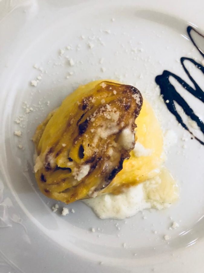 Dopo un favoloso tagliere di norcineria locale, accompagnata da due calici di rosso, in un posticino delizioso sulla via principale, ci siamo spostati al ristorante “trattoria dal Moro” dove ho assaggiato un raviolo al forno ripieno di pecorino con il miele, da sentirsi male.