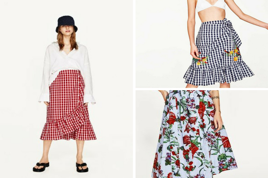 Per un picnic in campagna non c’è niente di meglio che abbinare il nostro outfit con il tema e il mood della giornata. E allora noi consigliamo maxi gonna Zara fantasia Vichy con volant per le più audaci rigorosamente a quadretti bianchi e rossi.