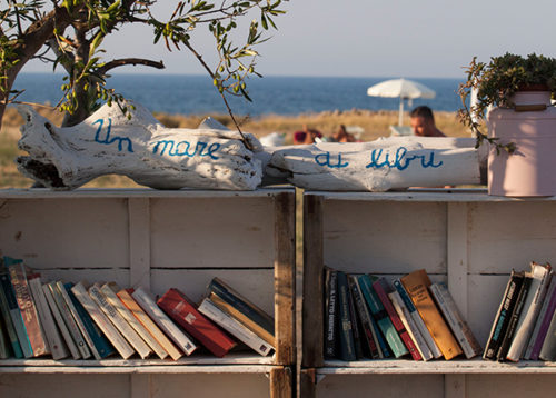 L’Archeolido sorge su un promontorio roccioso della valle dell’Itria, territorio arido a prima vista, ma loro hanno saputo renderlo accogliente e coccoloso: legno chiaro ovunque, cactus e fiori colorati, ceramiche pugliesi che riprendono le sfumature del mare, un angolino dove scegliersi il proprio libro da lettura sotto l’ombrellone e, chicca delle chicche, frasi e pensieri scritti qua e là che richiamano la calma…”Otium “nella zona dei gazebi in vimini, “un mare di libri” nella zona biblioteca temporanea ma quella più bella per me è stata “Che musica il silenzio“.