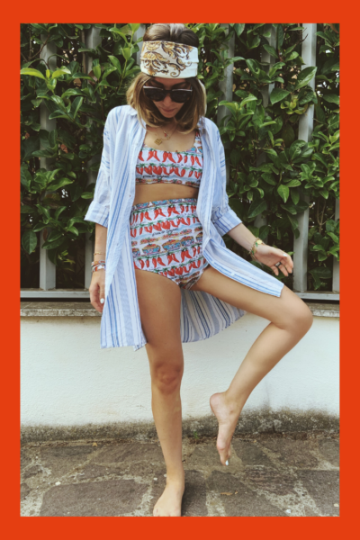 Per quest’estate ho scelto il bikini “Pizza e Spaghetti”, nella versione a fascia con slip a vita alta.