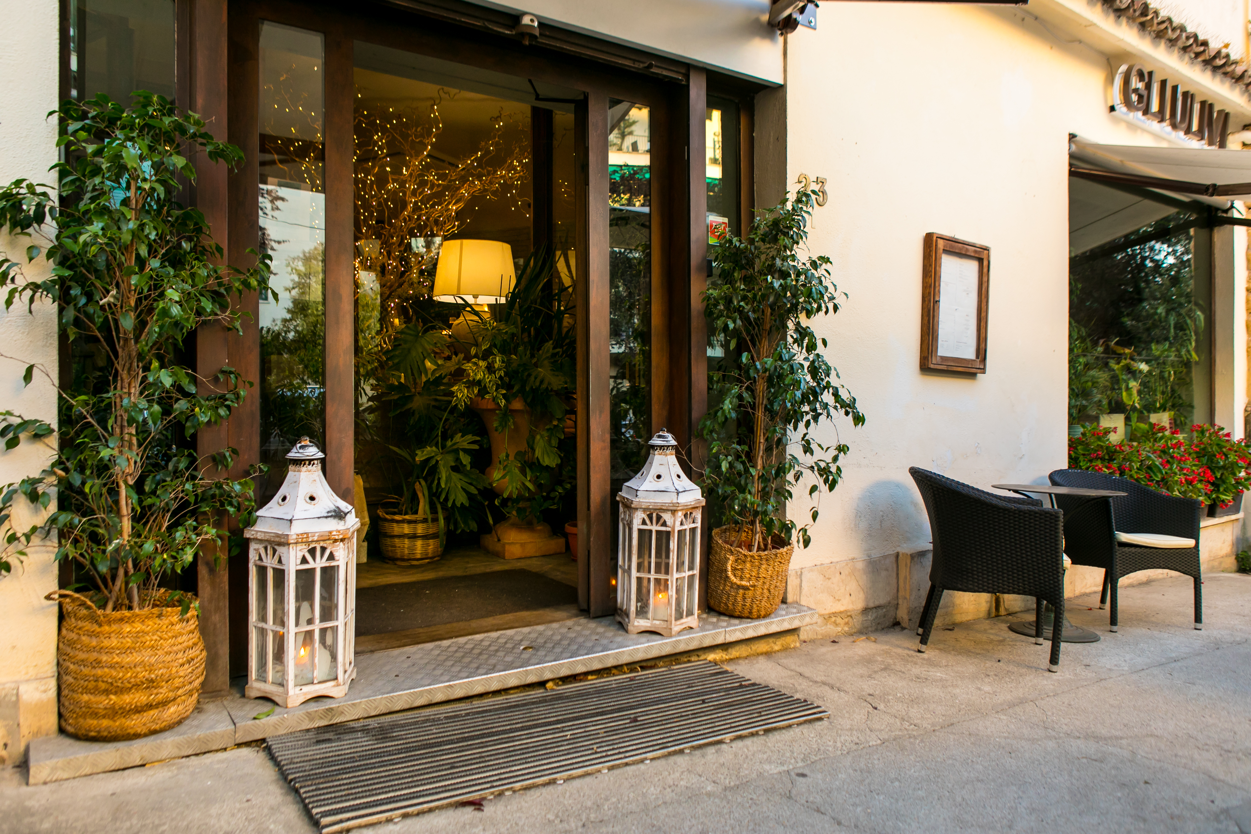 Anche se sicuramente si gode dello charme degli Ulivi meglio nelle stagioni invernali, ugualmente durante questa calda estate romana è molto piacevole cenare illuminati dalle grandi lanterne poste all’ingresso.