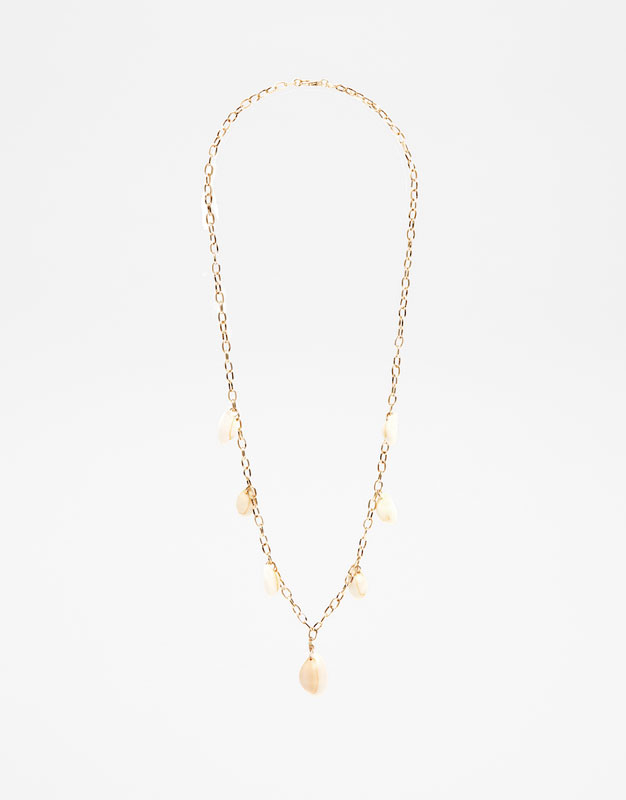 Perfetta da indossare sola o abbinata ad una serie di altre catene con monili di dimensioni più ridotte, questa catena con le conchiglie di Pull & Bear, ci piace proprio assai. Fosse anche solo per il prezzo mini.