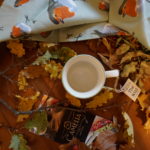 In particolare di una tazza (che mi son divertita a fotografare con tutto il fogliame raccolto insieme alle mie amiche durante una giornata di trekking), una tazza elegante, dai colori tenui, con quel bordino verde salvia che riprende i colori della mia nuova cucina, ormai mi fa compagnia tutte le mattine a colazione insieme al pettirosso che mi guarda e mi dice “perchè non torni a letto che si stava meglio?”