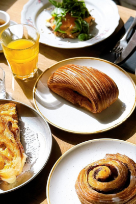 Anche la colazione è un’esperienza: croissant dolci e salati, sfoglie fragranti e caffè della torrefazione Mondi preparato con metodi che spaziano dall’espresso al V60. A completare l’offerta, succhi bio, estratti freschi e un delizioso matcha latte. Un luogo dove arte e alta pasticceria si incontrano.
