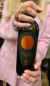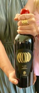 Quando si dice il “bello della diretta”, durante la serata c’è stato un piccolo fuori programma. A grande richiesta dei commensali è stato servito un altro vino di punta della Cantina, un Cabernet Franc , intenso e profumato. Gradevole non  solo al palato, ma anche alla vista con uno dei disegni migliori da etichetta di tutta la cantina: un punto nero in mezzo allo spazio. Oltre ad essere un simbolo etrusco, a nostro avviso potrebbe lasciare libero svago all’immaginazione di chiunque vi si trovi davanti.