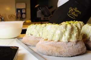 La cena si è conclusa con gli splendidi e buonissimi dolci de I Ragazzi dell’Etoile (da provare e riordinare all’infinito la sacher, SPETTACOLARE), tra cui il famoso Dolce Vita Etoile. Per quanto riguarda quest’ultimo noi abbiamo avuto l’onore di assistere alla sua creazione, in tutte le sue fasi di glassatura. E’ inutile dirvi i litri di acquolina in bocca che avevamo.