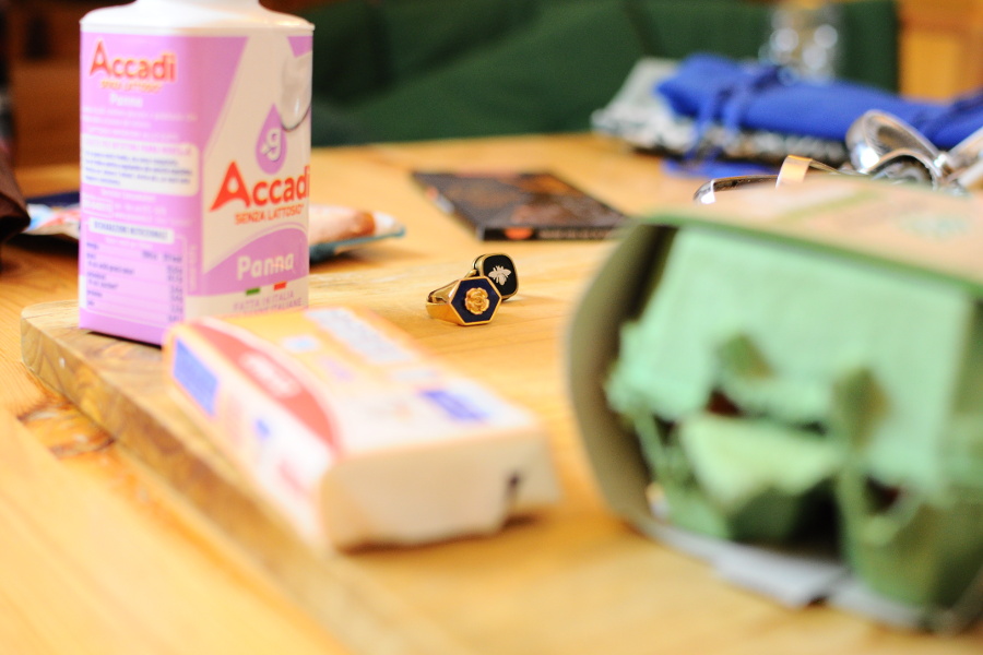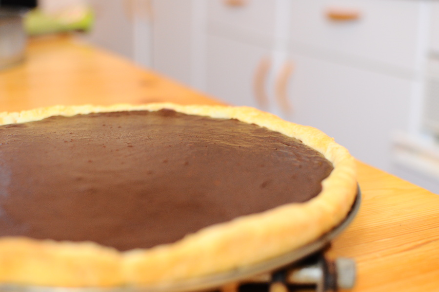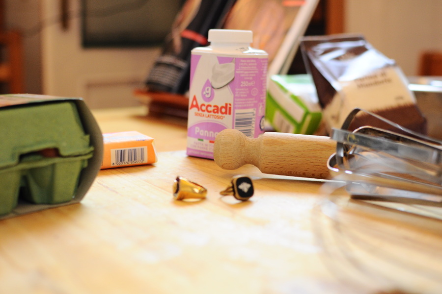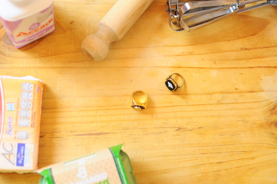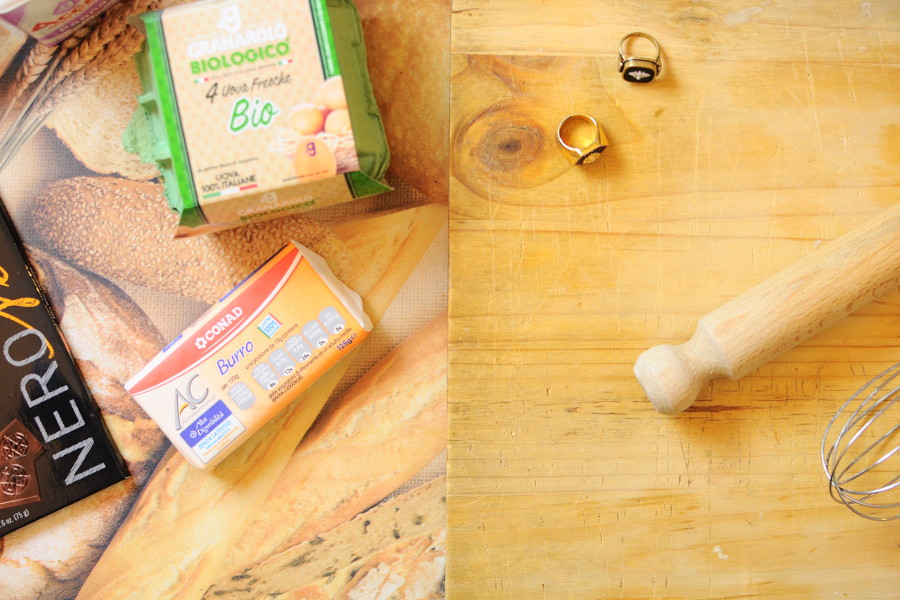 - tirare fuori la pasta frolla e aggiungerci la ganache (sniffando per bene l’odorino che emana);