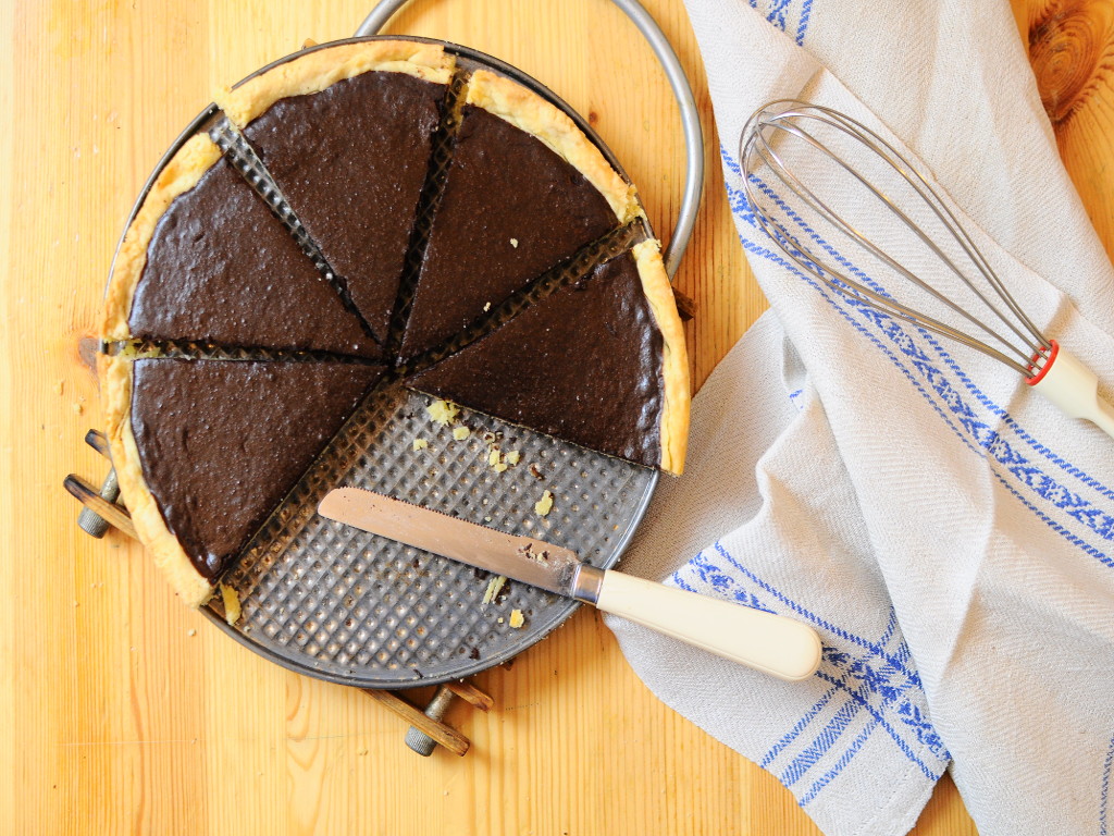 Quando, dopo i bagordi di Pasqua, ti avanzano ancora tanti frammenti di uova di cioccolato e non sai più come e quando mangiarli…oggi suggeriamo come riutilizzarli: crostata con ganache al cioccolato!